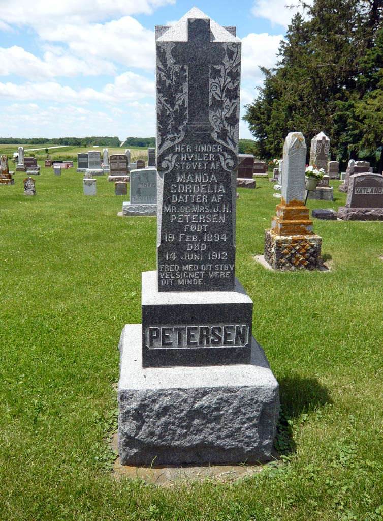 | Manda Cordelia | Petersen | 2A | 24 | 2/19/1894 | 6/14/1912 | datter af Mr. og Mrs. J. H. Petersen | 51 |