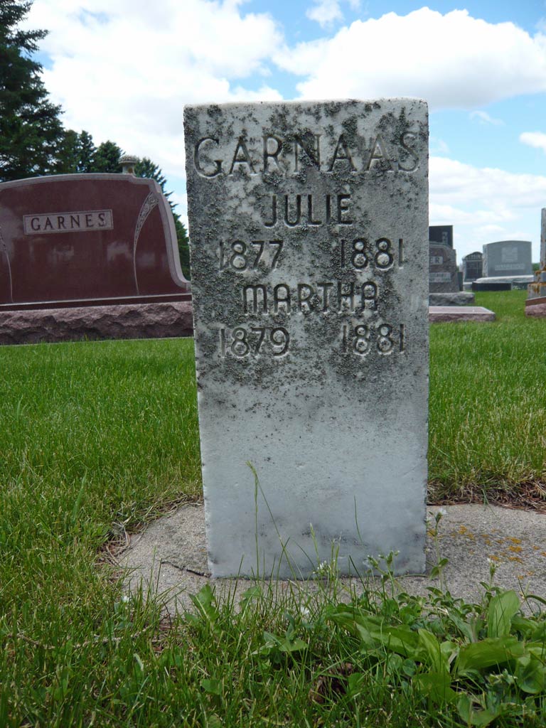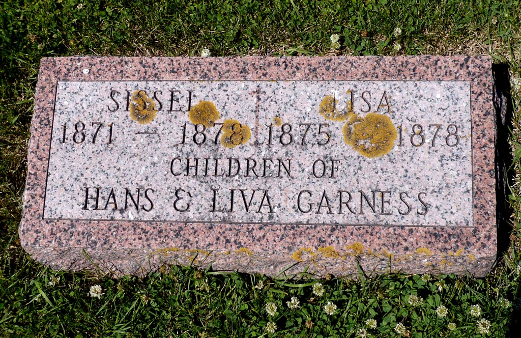 | Sissel | Garnaas | 1A | 8 | 3/13/1803 | 3/10/1883 | erected in memory in 1958 | 30 |