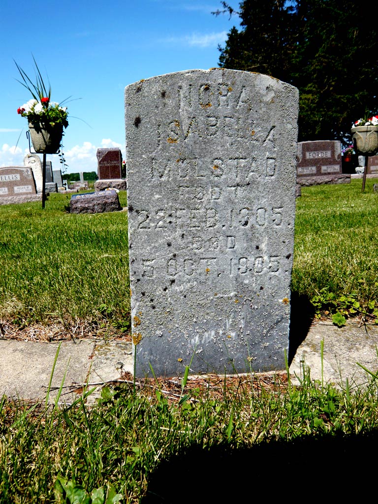 | Nora Isabella | Molstad | 3A | 28 | 2/22/1905 | 10/5/1905 | 90 | |