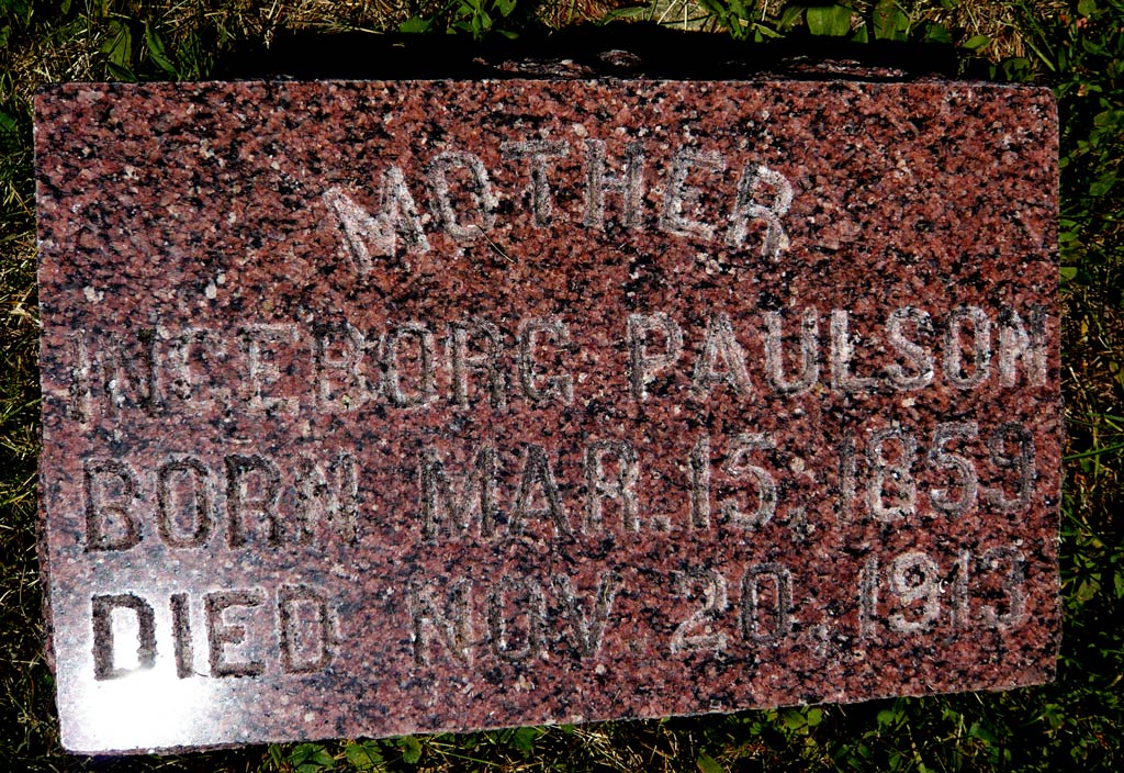 | Ingeborg | Paulson | 3A | 30 | 3/15/1859 | 11/20/1913 | Mother | 88 |