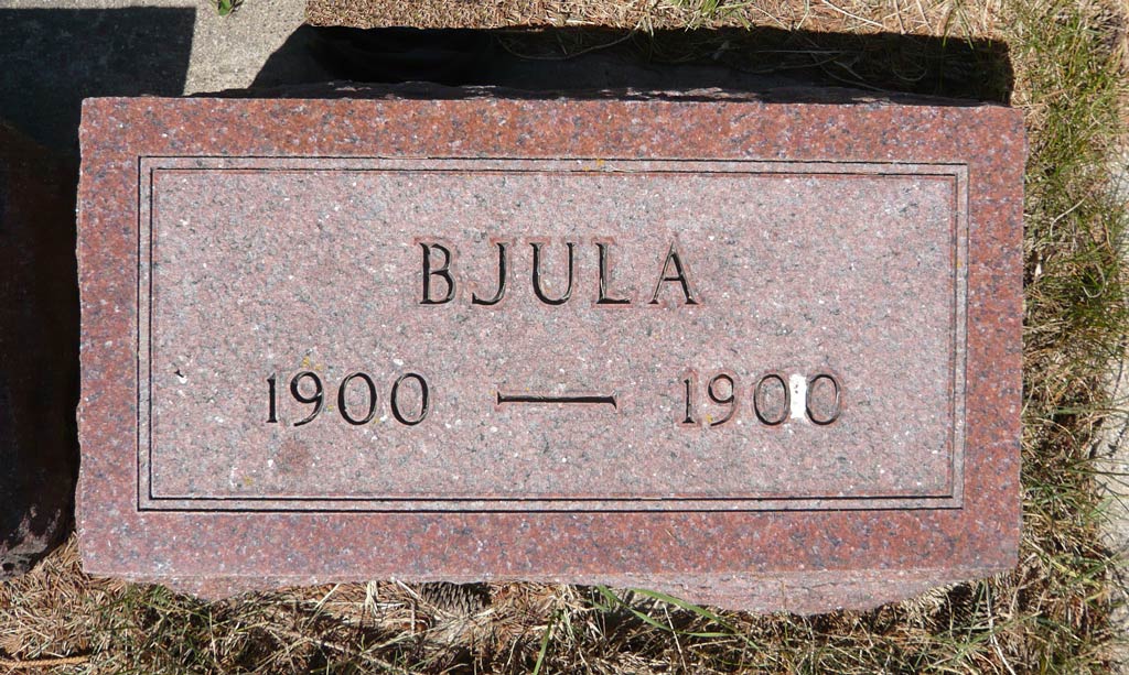 | Bjula | Garness | 2A | 8/6/1894 | 3/2/1898 | Dau til Mr. og Mrs. K. O. Garness | 75 | |