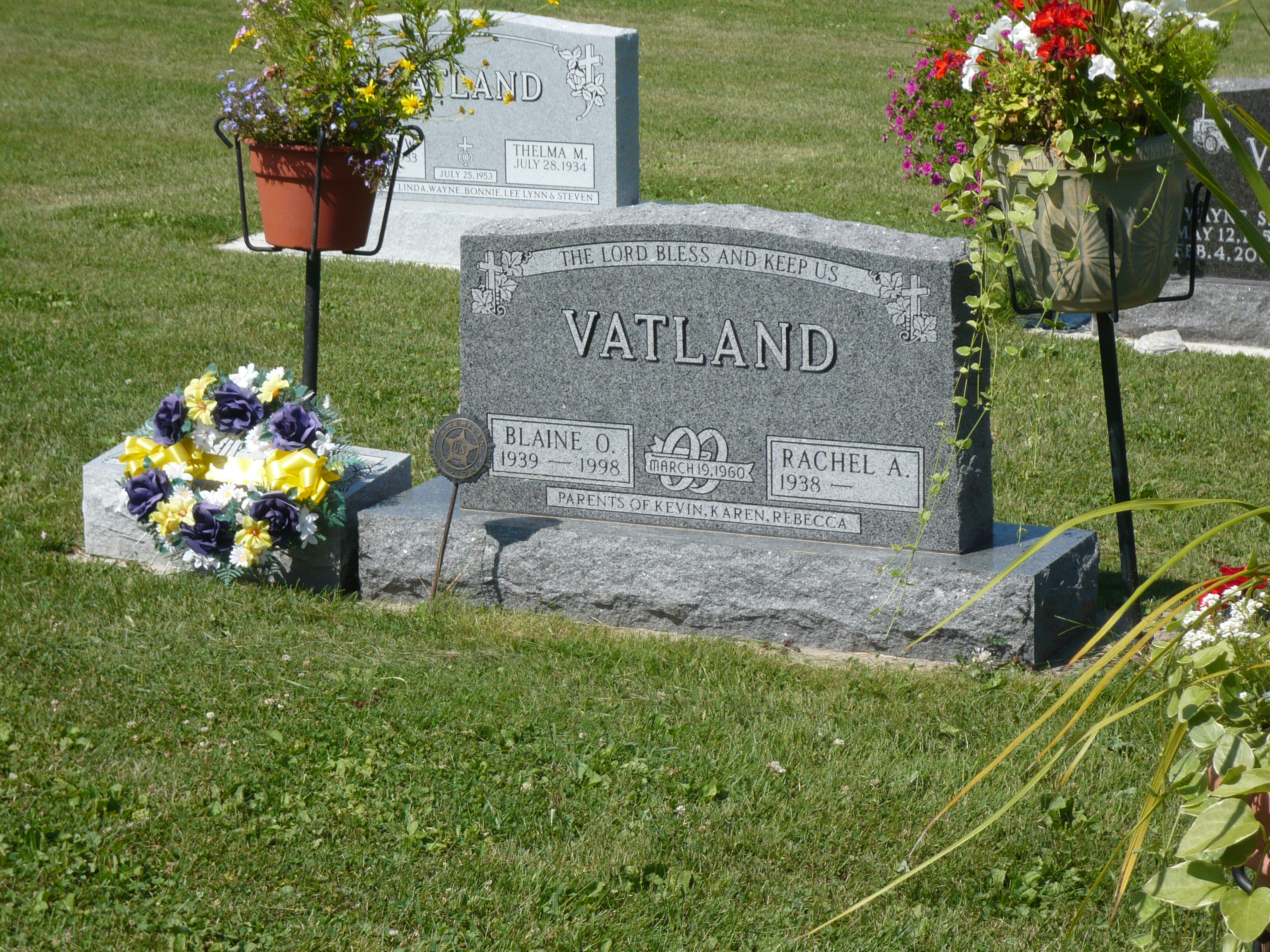 | Blaine O. | Vatland | 4B | 9 | 1939 | 1998 | (married) 3/19/1960; Parents of Kevin, Karen, Rebecca | 560 |